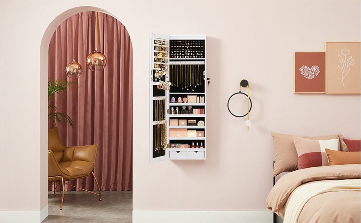 मिरर के साथ वॉल माउंटेड ज्वैलरी आर्मोयर