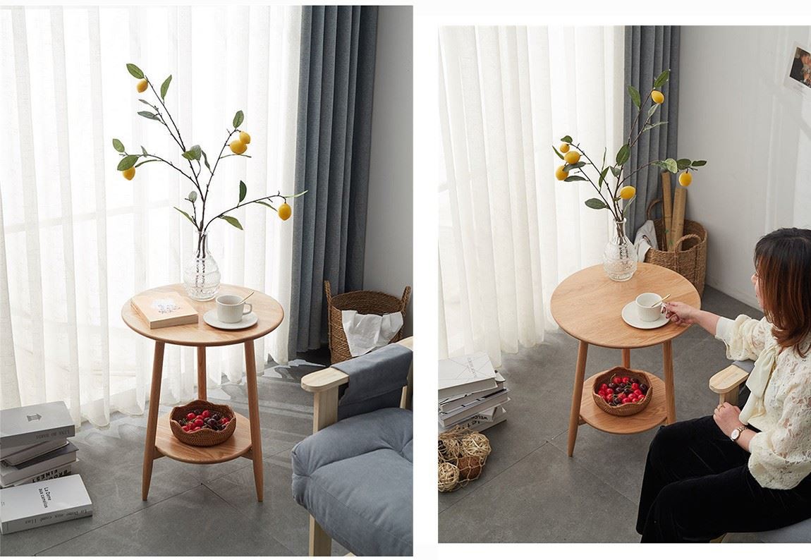 शुद्ध ठोस लकड़ी कॉफी टेबल नॉर्डिक सरल आधुनिक सोफा साइड टेबल लिविंग रूम छोटी गोल मेज साधारण कॉफी टेबल बालकनी छोटी मेज